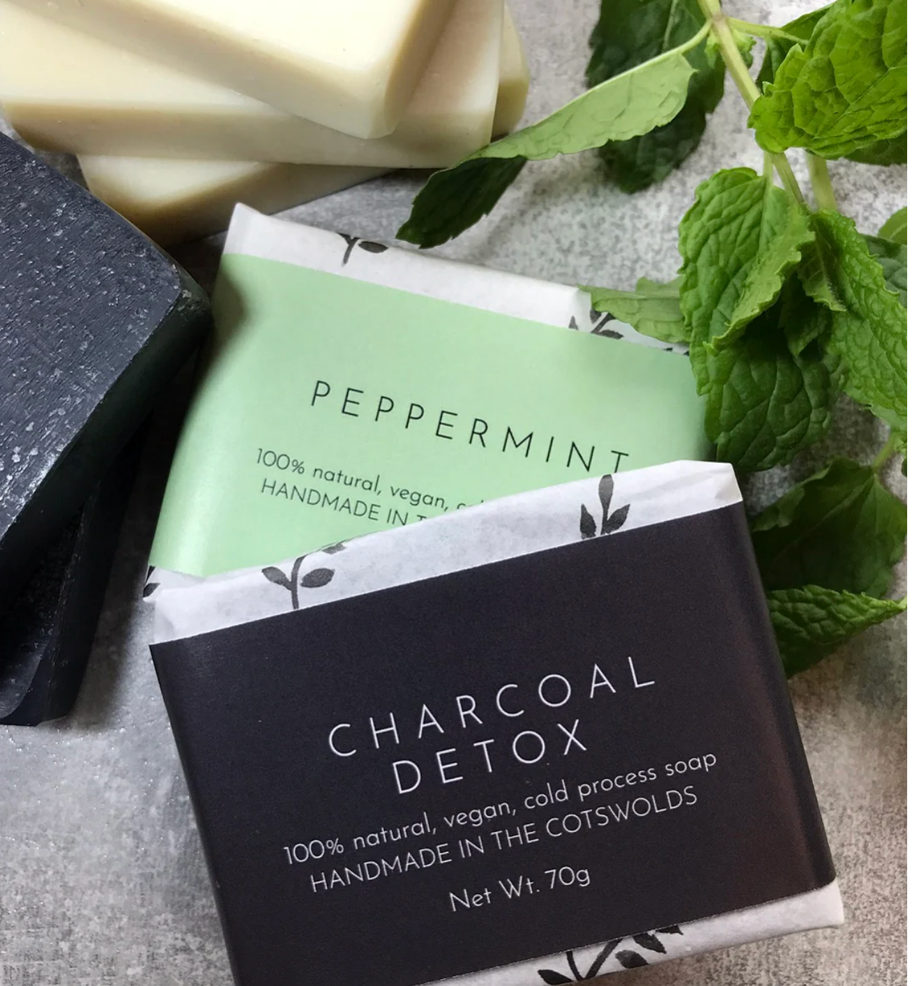 Handcrafted natural soap is packed with detoxifying activated charcoal from sustainably sourced coconut shells. Entirely natural with coconut oil and shea butter. Plant based, vegan and free from additives or preservatives such as SLS and parabens. Also palm oil free and sustainable wrapped.