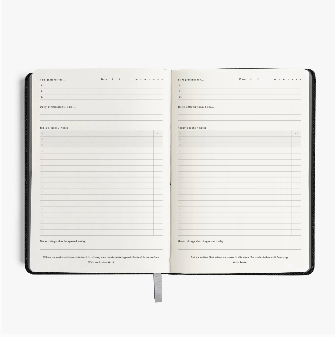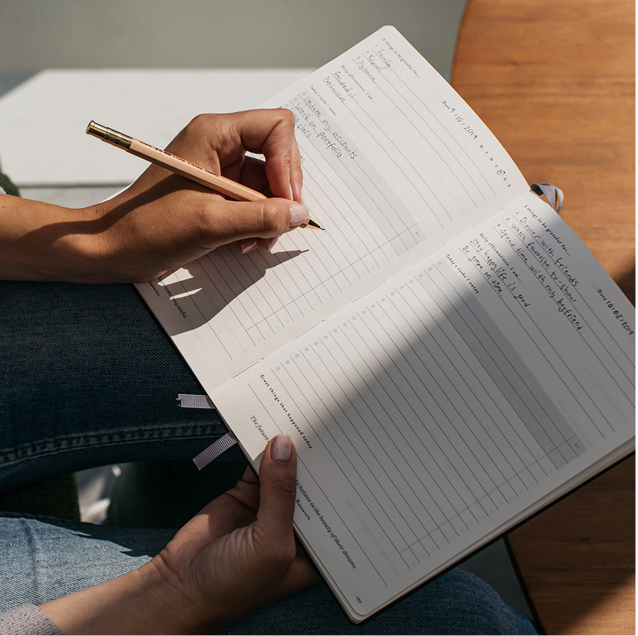 The simplest thing you can do to start your day happier is to write in your daily goal planner. Helps you focus on the positive and become more mindful.